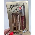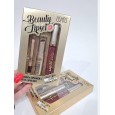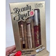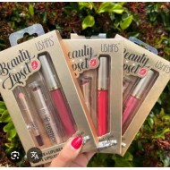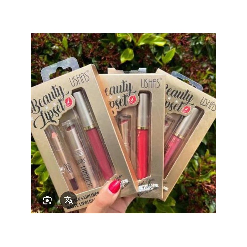 Lipstick + lipliner + matte lipgloss .